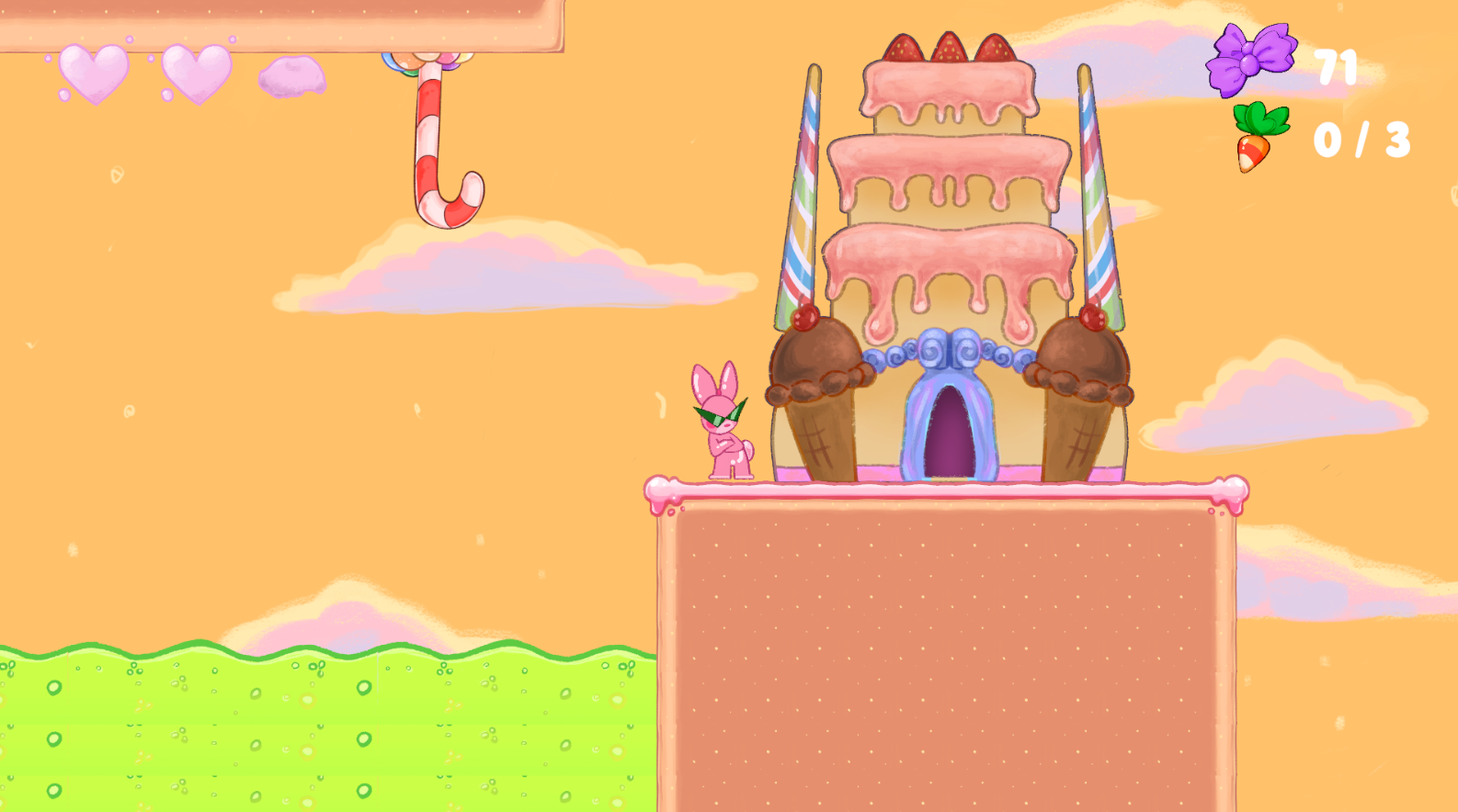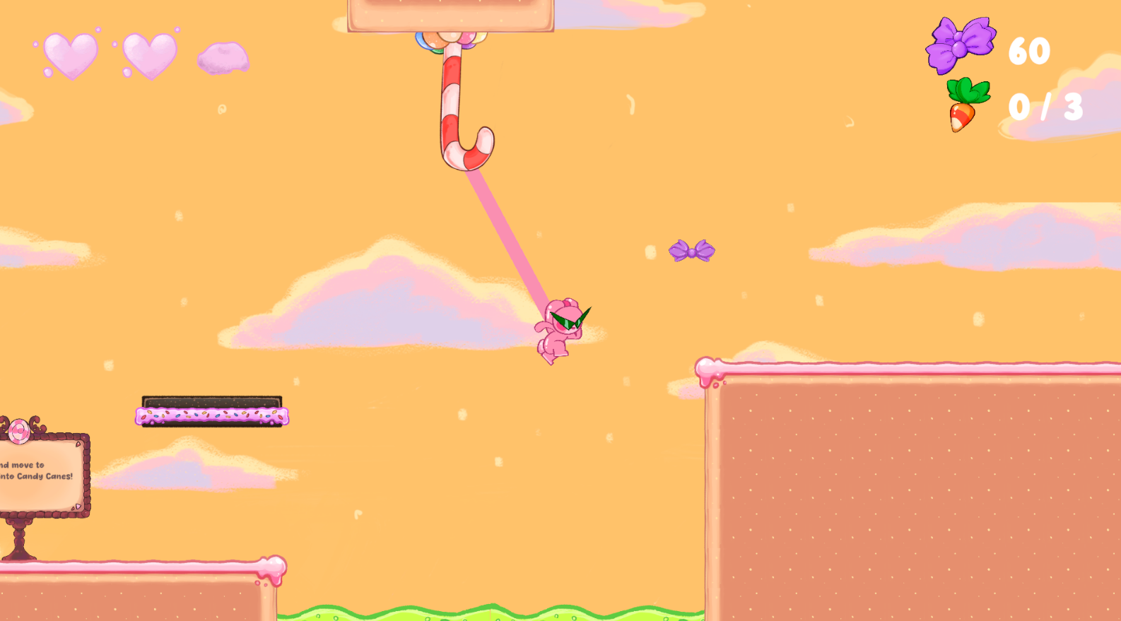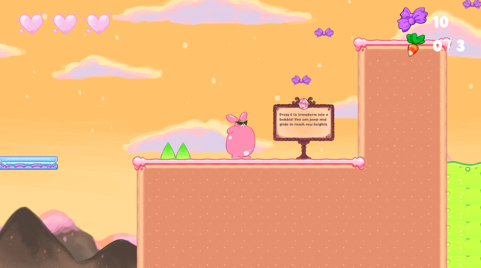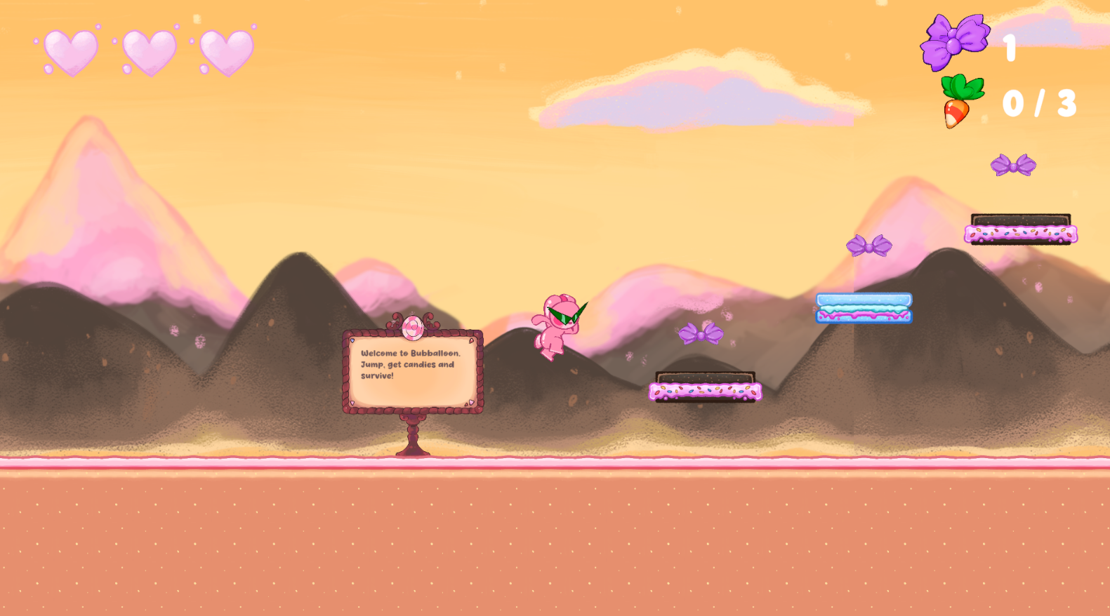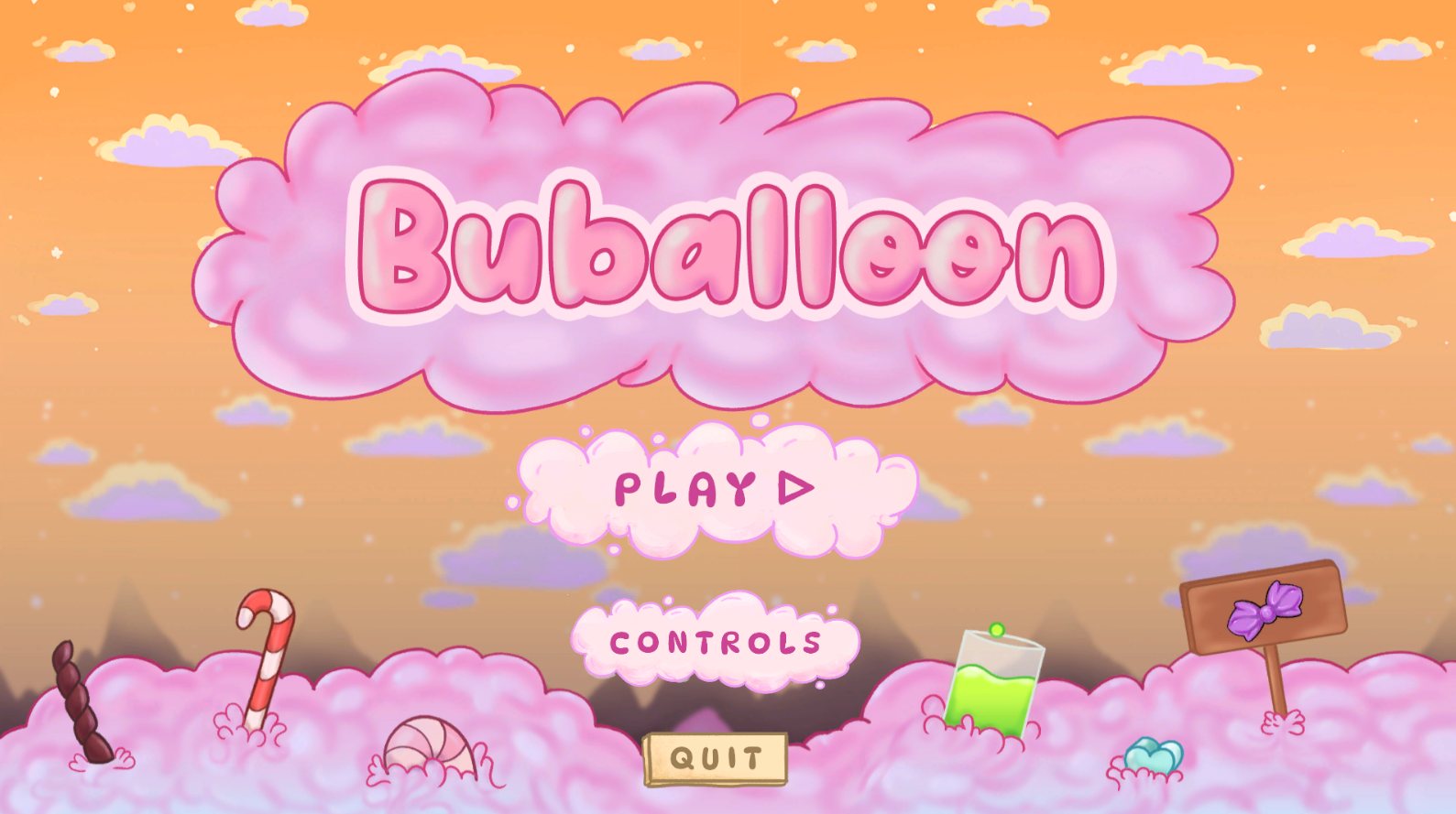 Buballoon is a 2D singleplayer platformer where the player controls Buba. Buba is a bubblegum who can transform into a balloon to jump great heights and stretch to zipline between grappling hooks, evading obstacles to pass each level.